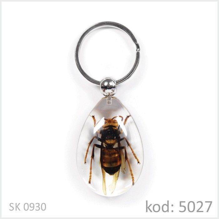 Brelok do kluczy z zatopionym okazem: Osa Brelok ma wymiar: 4 cm wysokości i 2,5 cm szerokości Zapakowany jest papierowe eleganckie pudełko